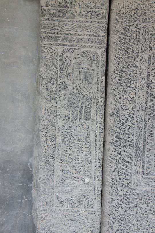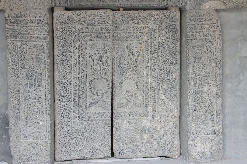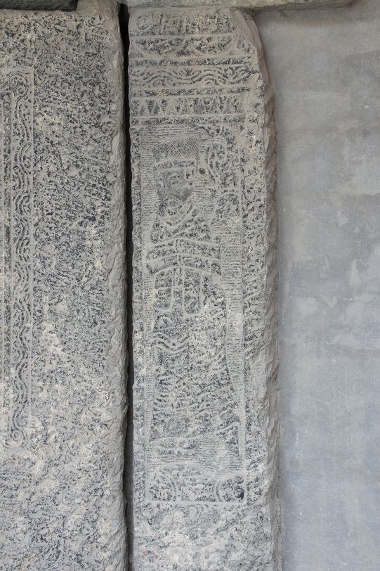 1978年出土于马戈庄镇马戈庄东汉墓。由8块长方形条石组成,其中门楣3块,门柱2块,门扉2块,门槛1块,除门槛石外皆雕刻画像。上门楣:长*宽*厚193*47*23;中门楣:长*宽*厚189*48*23;下门楣:长*宽*厚195*46*23;两石柱均:长*宽*厚28*122*23;两门扉均:长*宽*厚52*120*10;门槛:长*宽*厚:174*16*31。