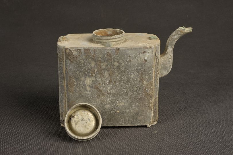 清“莱郡同茂”带盖扁锡壶