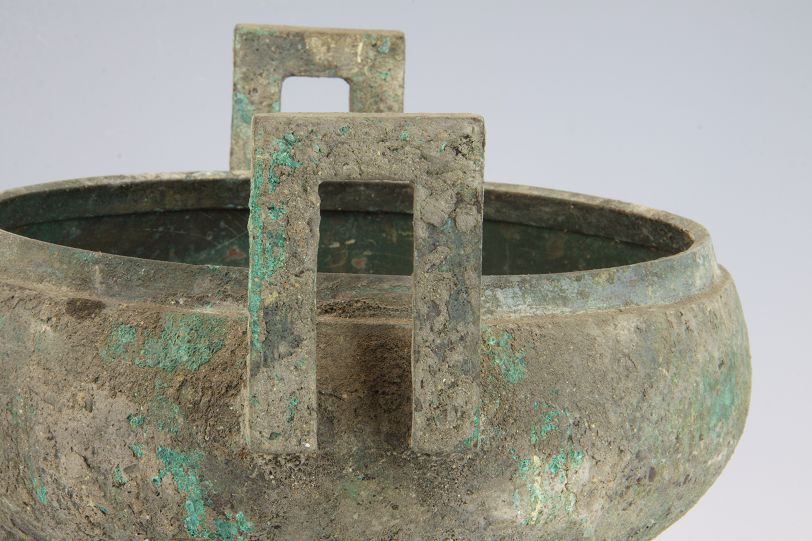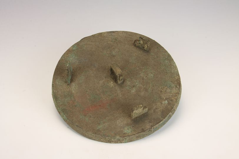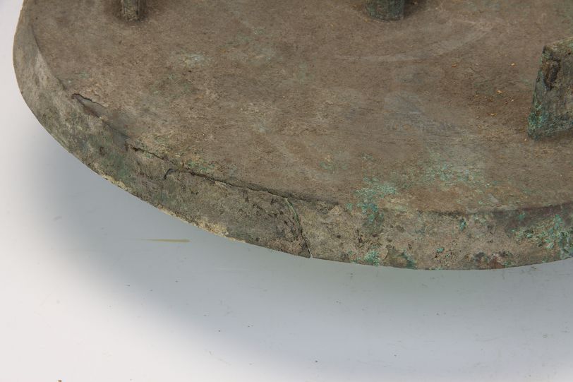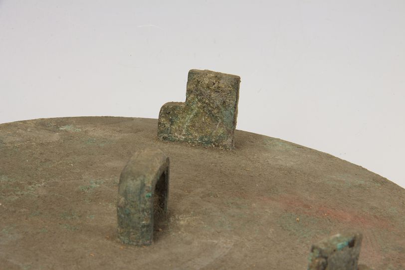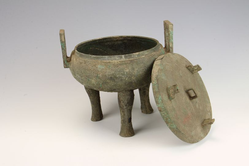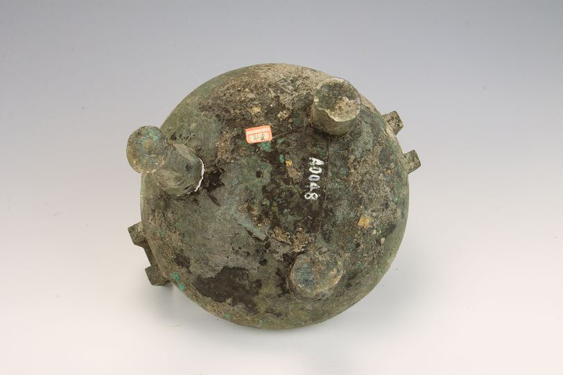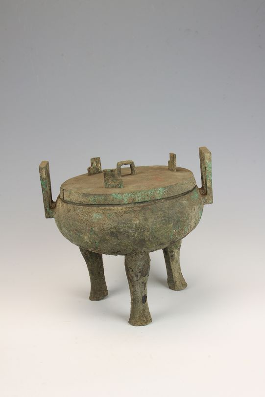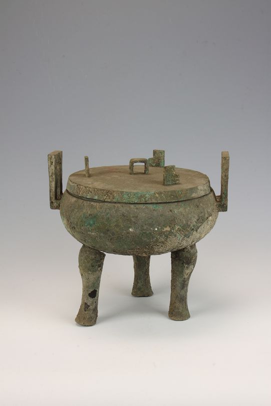 通高26,腹径27.5,口径22.5;双耳高3,宽6;盖直径25.5,足高12,钮高2.5,宽3.3