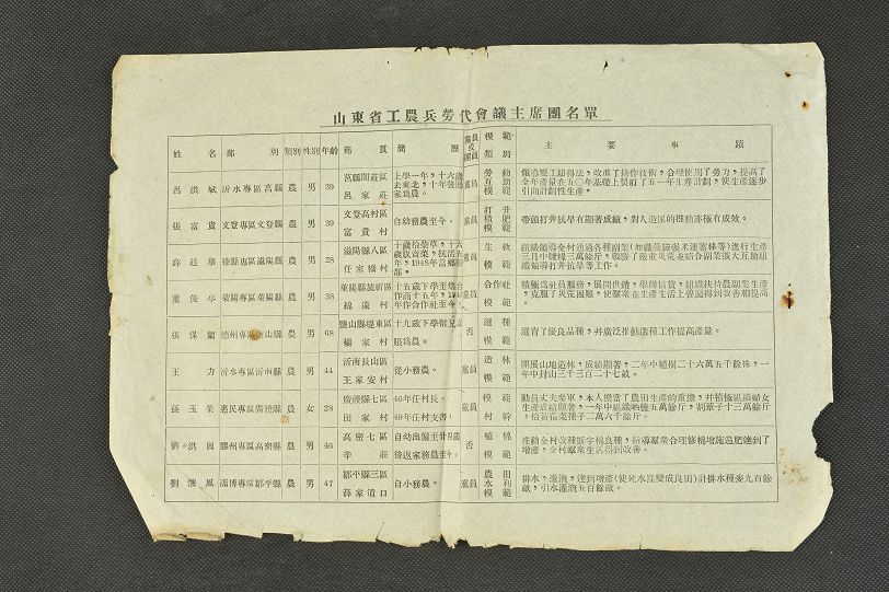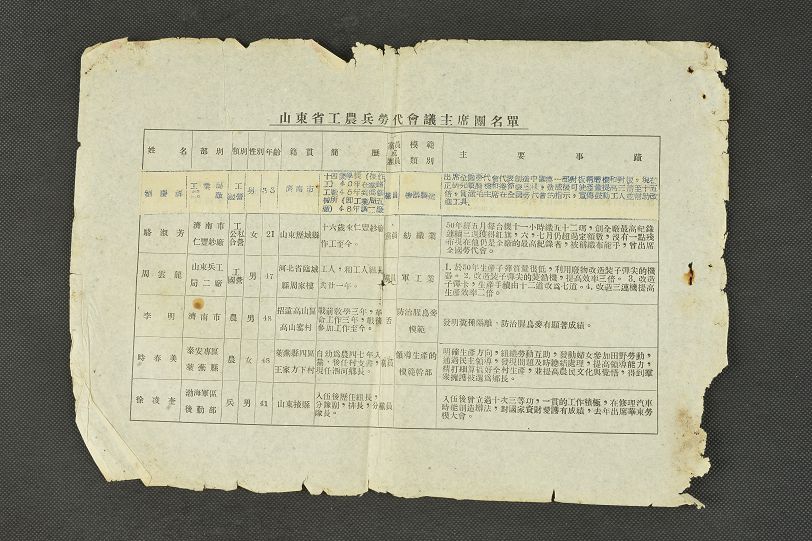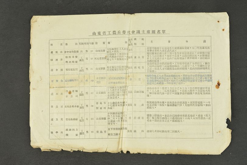 1951年山东省工农兵劳代会议主席团名单(资料)