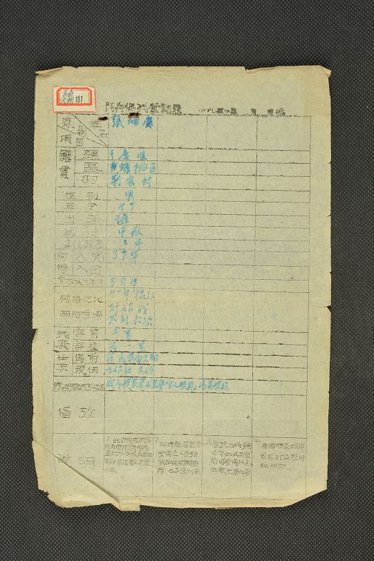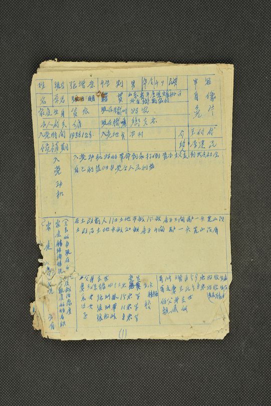 中华人民共和国民兵伤残登记表(张增庆)(资料)