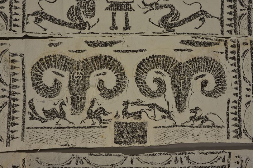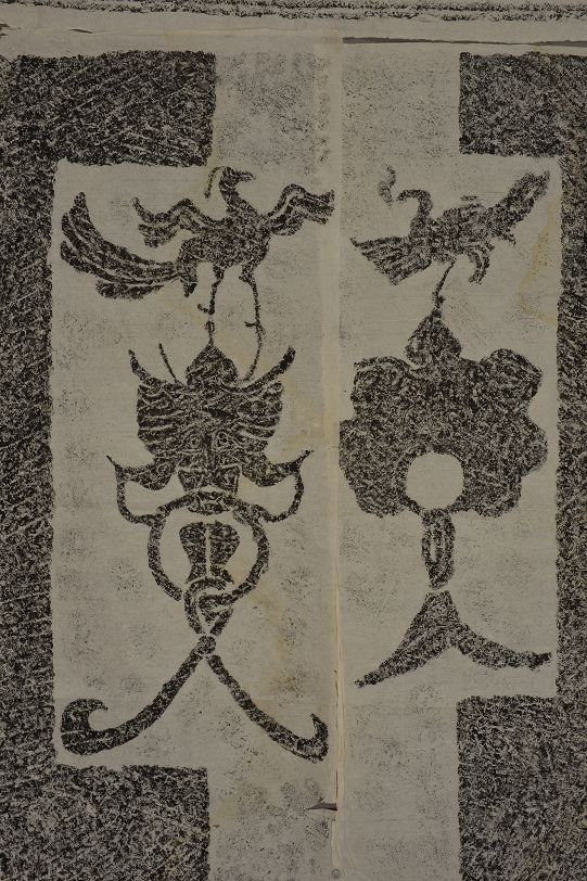 2003年拓东汉高浮雕双羊头画像石墓门拓片(资料)
