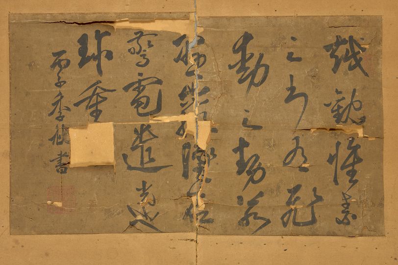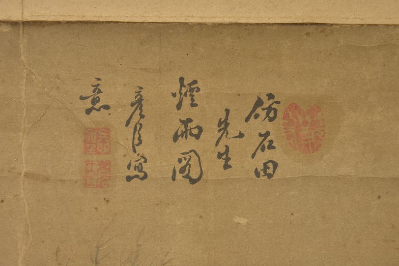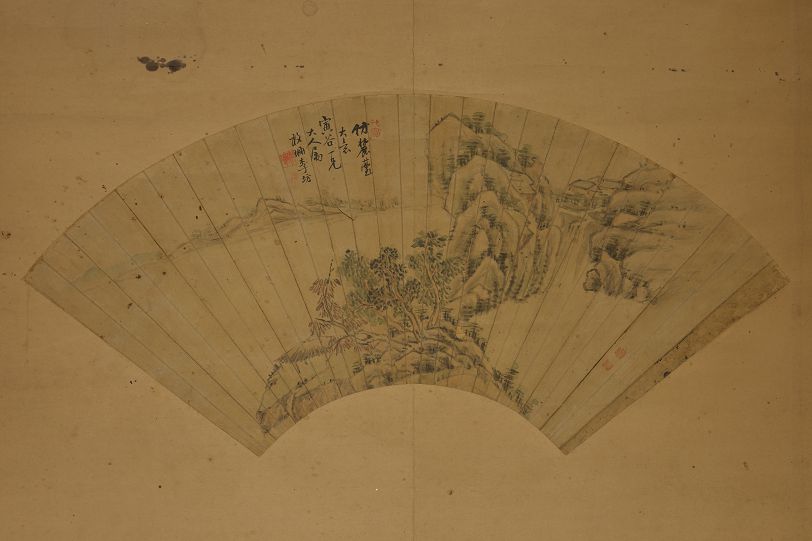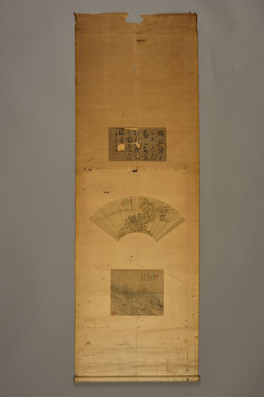 清彦臣山水小品李坊山水扇面丙子无名氏草书小品合裱轴