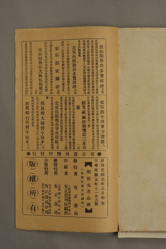 中华民国5年11月印本《明拓颜鲁公元次山碑》