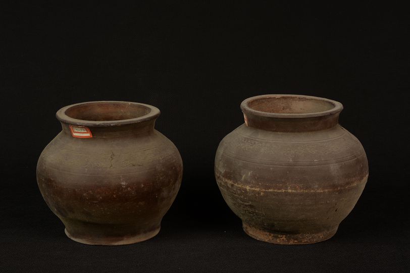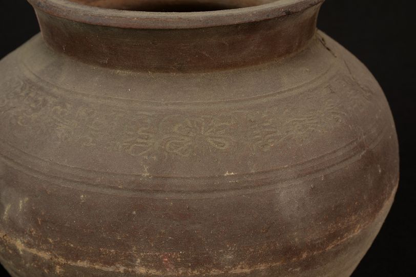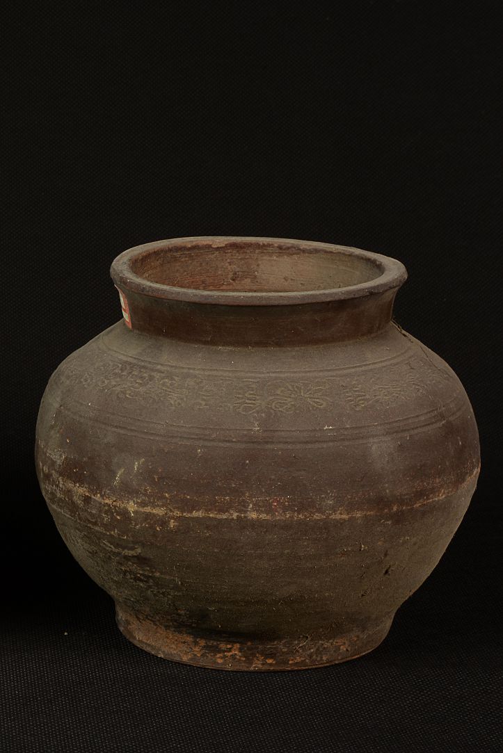 汉花草纹红陶罐