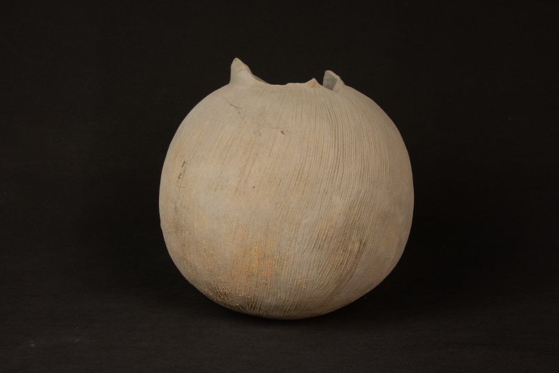汉球形绳纹灰陶罐