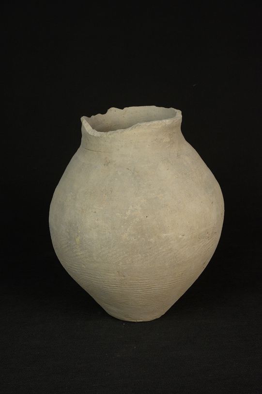 汉绳纹灰陶罐