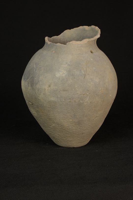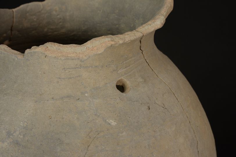 汉双孔绳纹灰陶罐