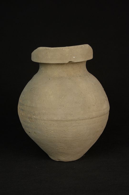 汉绳纹红陶罐