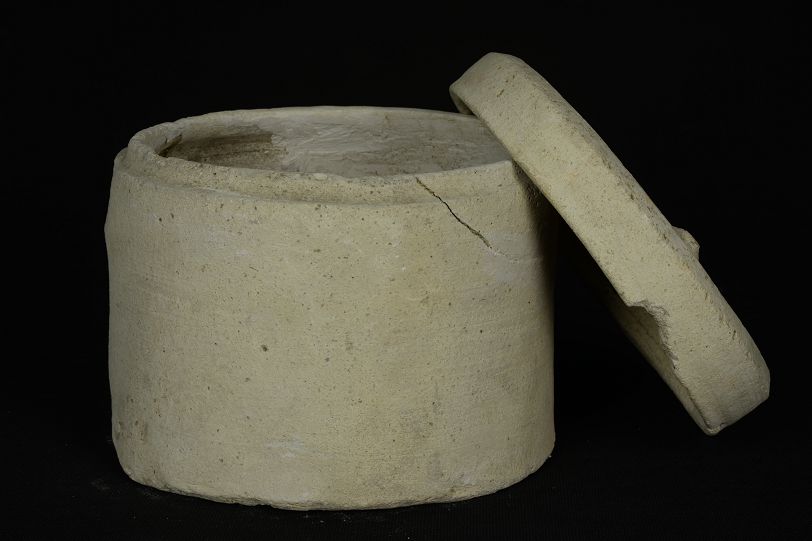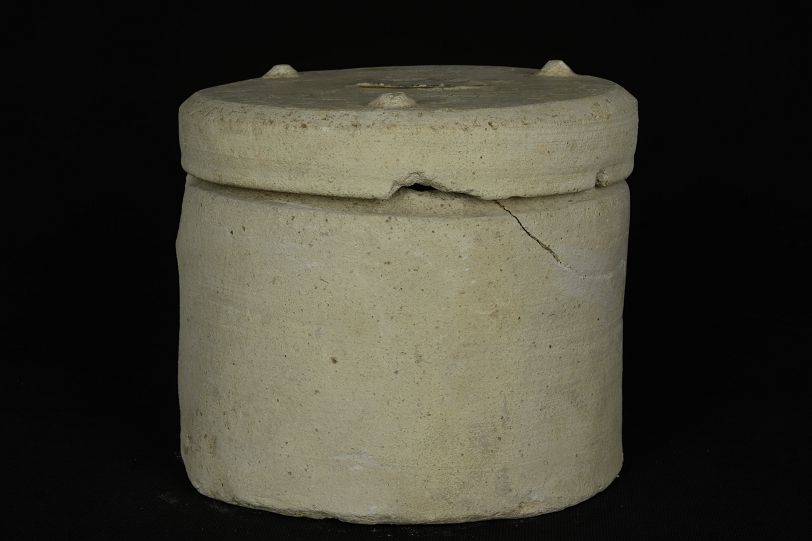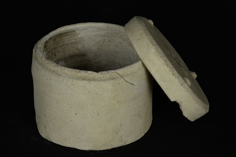 汉带盖白陶奁