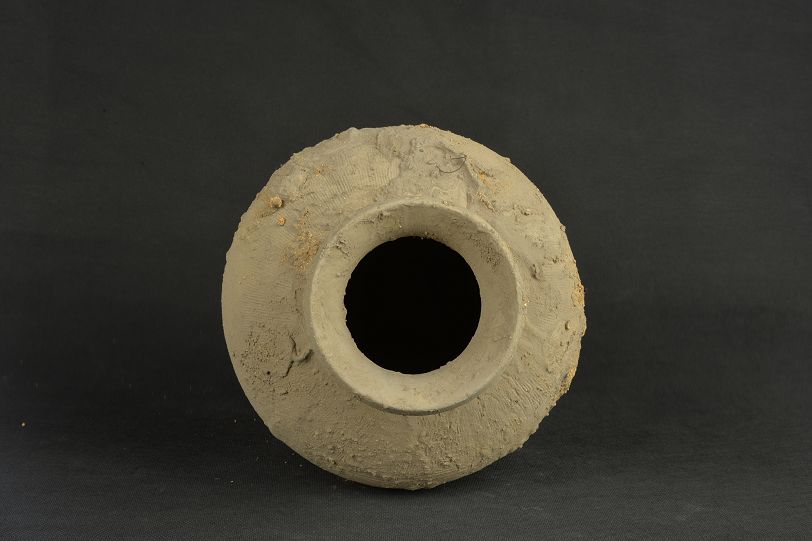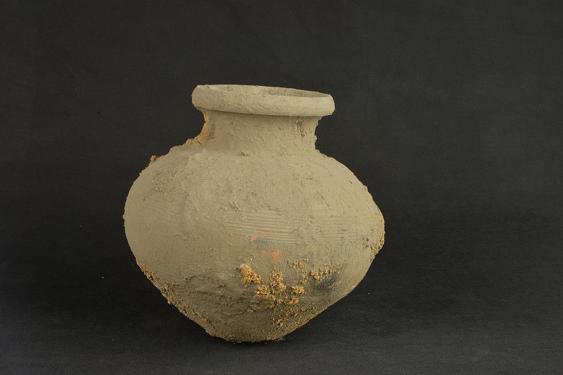 汉绳纹灰陶罐