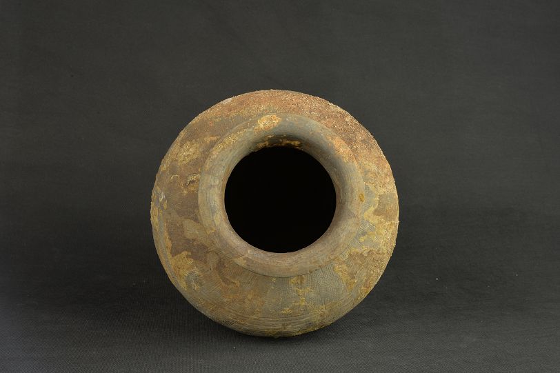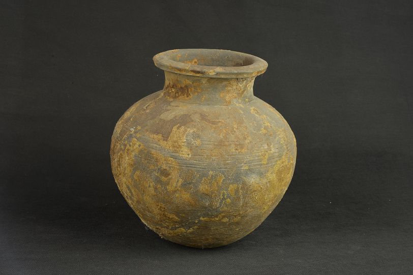 汉绳纹灰陶罐