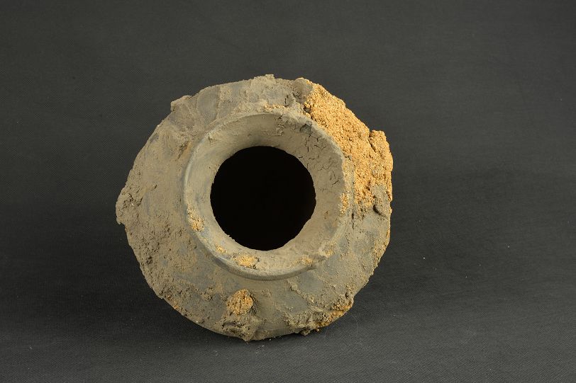 汉绳纹灰陶罐
