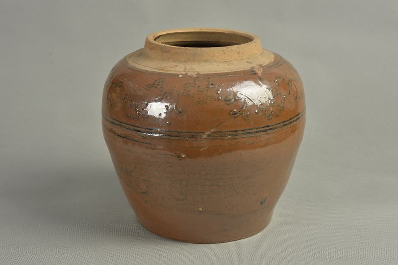 元白釉黑花四系罐