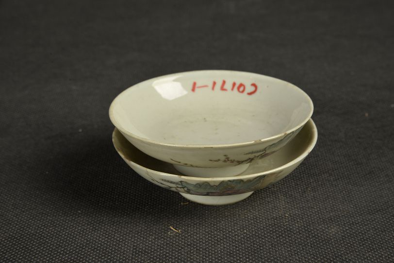 清人物风景图瓷扣碗盖