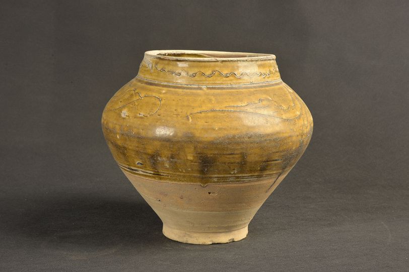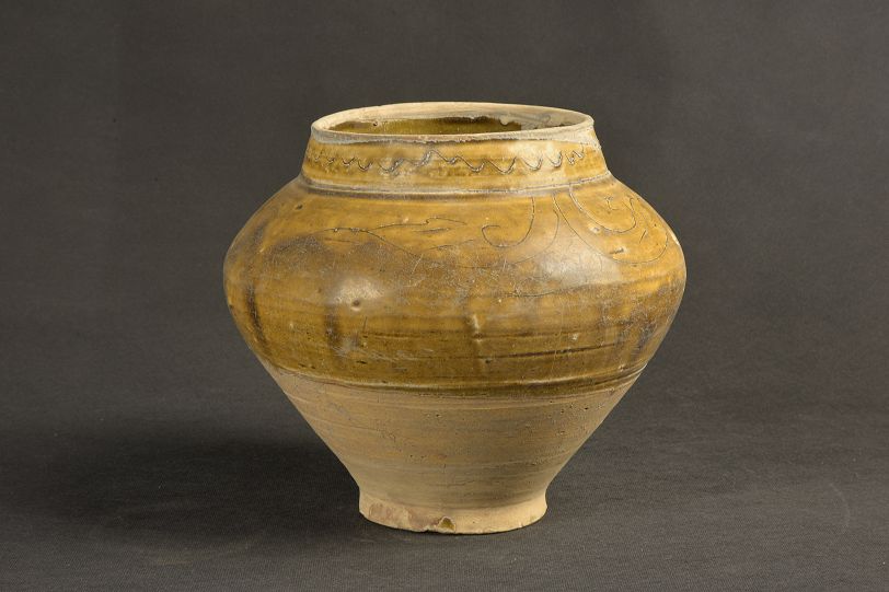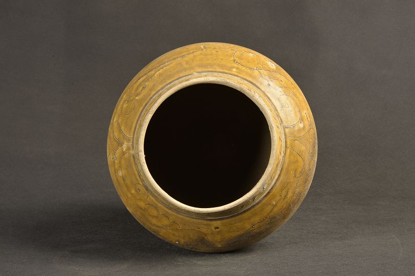 金黄釉云纹罐