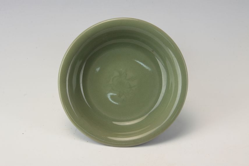 平度市博物馆馆藏文物宋龙泉窑青釉盘,旧藏,出土地点不详。敞口,浅腹,圈足,盘心有一个花卉图案,青釉肥厚如水,花卉映在水中央,饶有意趣。内外施釉,釉色青绿,光亮匀净,釉质如玉,器形规整,为龙泉窑名品。宋代龙泉青瓷是青瓷工艺的历史高峰。其青瓷的釉色与质地之美,亦如巧夺天工的人造美玉,全世人为之倾倒。