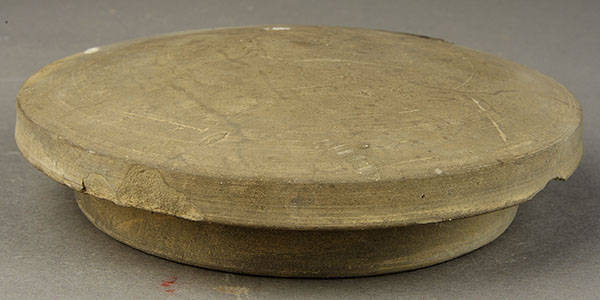 平度市博物馆馆藏战国时期彩绘陶壶,60年代出土于灰埠镇。陶壶通高36.5厘米,腹直径23.5厘米,底直径27.9厘米。泥质灰陶,鼓腹、高圈足,口部微外敞,颈部粗壮而挺拔,腹线圆鼓,圈足外撇,壶口上有浅钵式壶盖相扣。口沿部以朱砂绘几何图纹,壶身和壶的圈足部分用黄色打底,再涂以白色菱形花纹。彩绘的搭配绚丽斑斓,协调醒目,给人以美的享受。