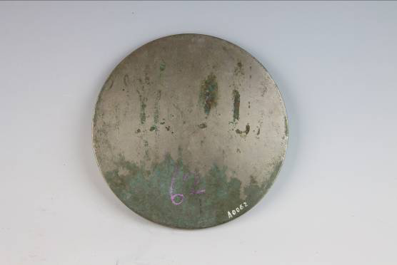 平度市博物馆馆藏西晋四乳八禽兽纹镜,60年代征集于民间。镜直径18厘米,重1193克。半球状钮,四叶纹钮座,斜立二重齿纹圈,镜背分为内外二区,内区镌刻篆书“长宜子孙”四个字。外区以四乳为基点均匀分成四区,每区为二禽兽,共八禽兽。第一区饰青龙、朱雀;第二区饰双凤凰;第三区饰虎、狮;第四区饰鼠、蛙。在鼠与蛙之间镌刻楷书“馬”字。边缘为一圈双线波浪纹,素平缘。铭文“长宜子孙”,寓意家族兴旺。“馬”字应为制镜者的姓氏或铜镜主人的姓氏。该镜采用浅浮雕式的手法,禽兽作腾跃状,构图巧妙,做工精细,为六朝铜镜的典型代表。