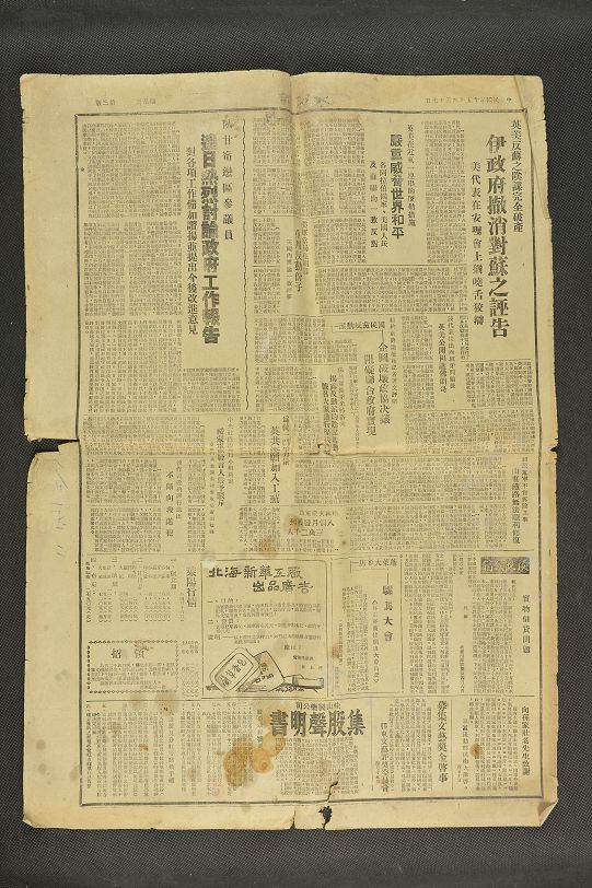 中华民国34年山东省胶东区行政公署奖状(于海亭)