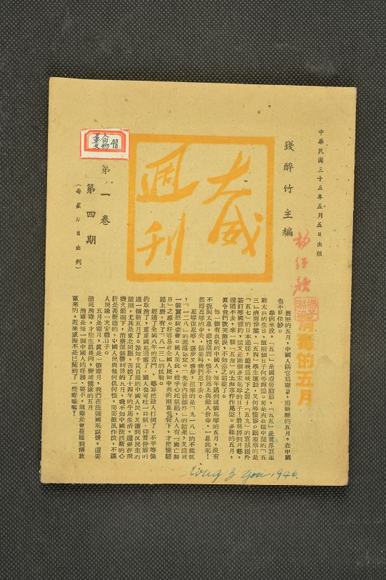 中华民国34年山东省胶东区行政公署奖状(于海亭)
