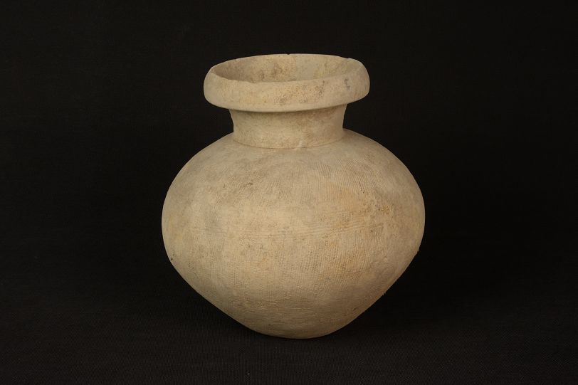 汉绳纹灰陶罐