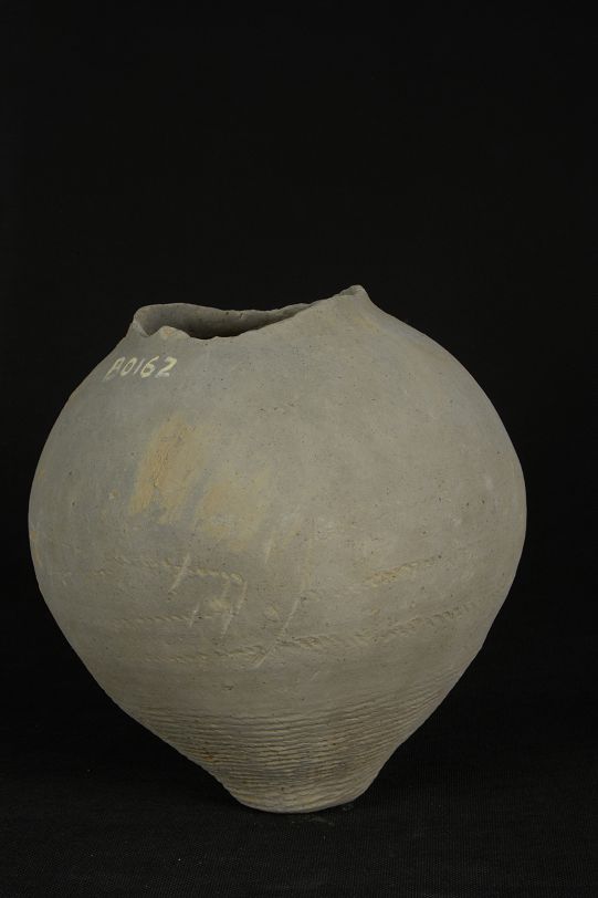汉绳纹灰陶罐