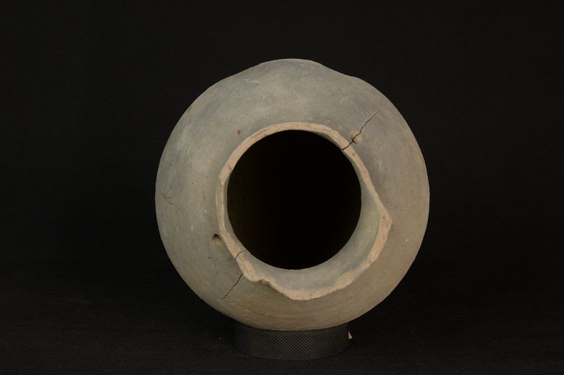 汉双孔绳纹灰陶罐