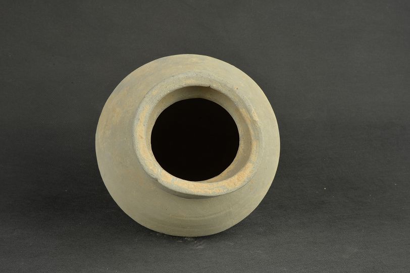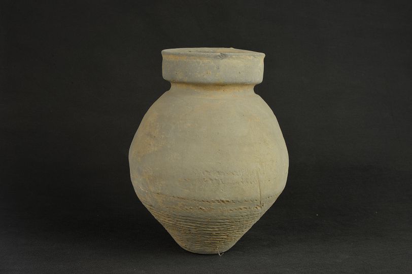 汉绳纹灰陶罐