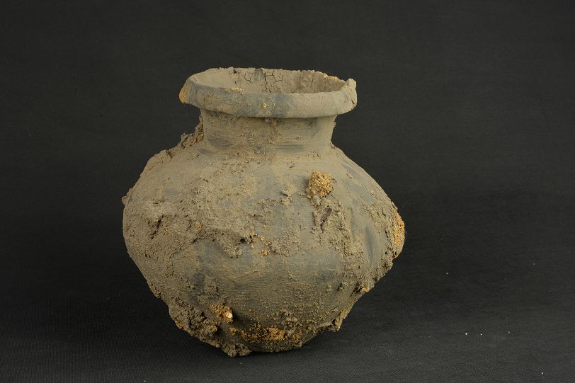 汉绳纹灰陶罐