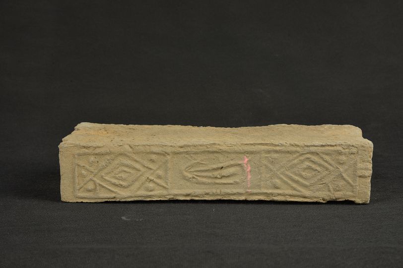 汉菱形与瑞兽纹灰陶砖