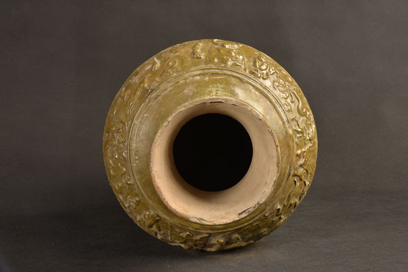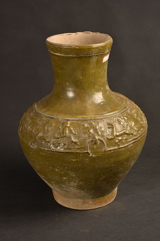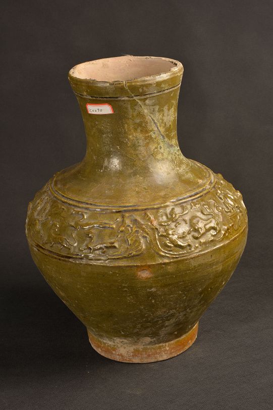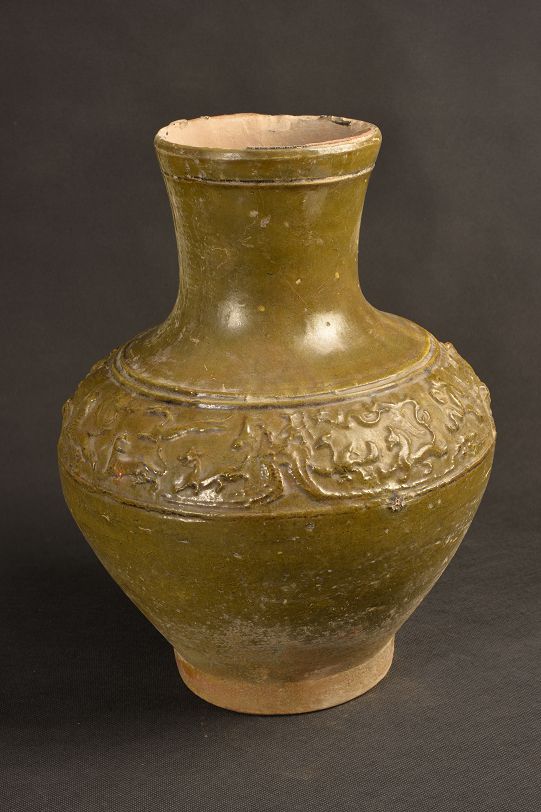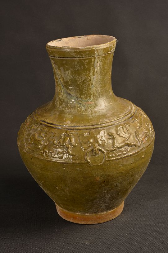 东汉绿釉铺首衔环纹瑞兽陶壶