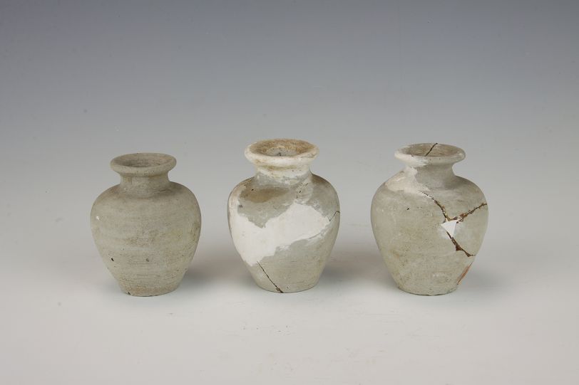 B0218-1高8.2、口径4.3、平底径3.6、腹径6.5;B0218——2高8.1、口径3.9、平底经3.1、腹径6.7;B0218——3高7.6、口径3.2、平底径3.4、腹径6.3。