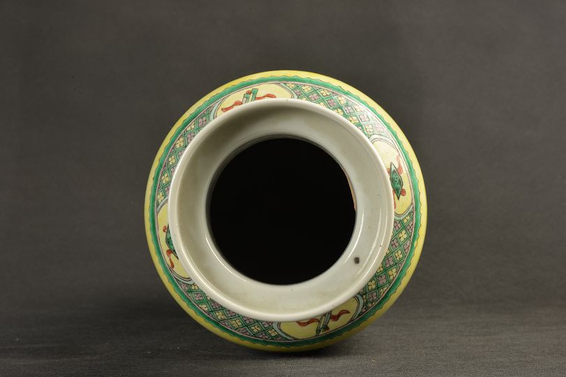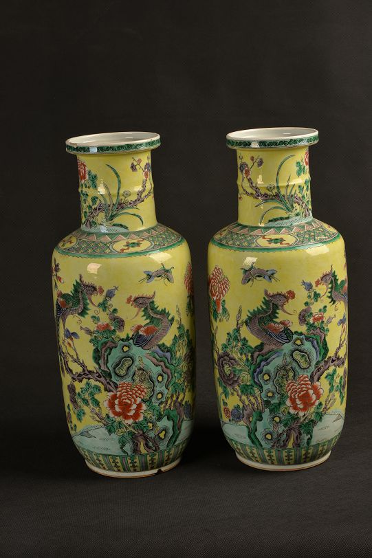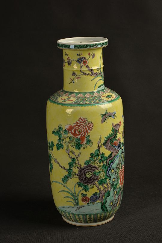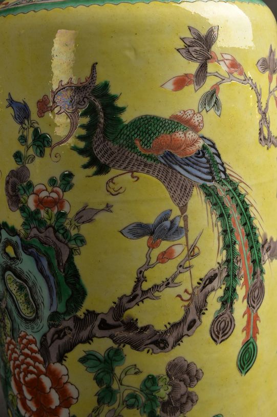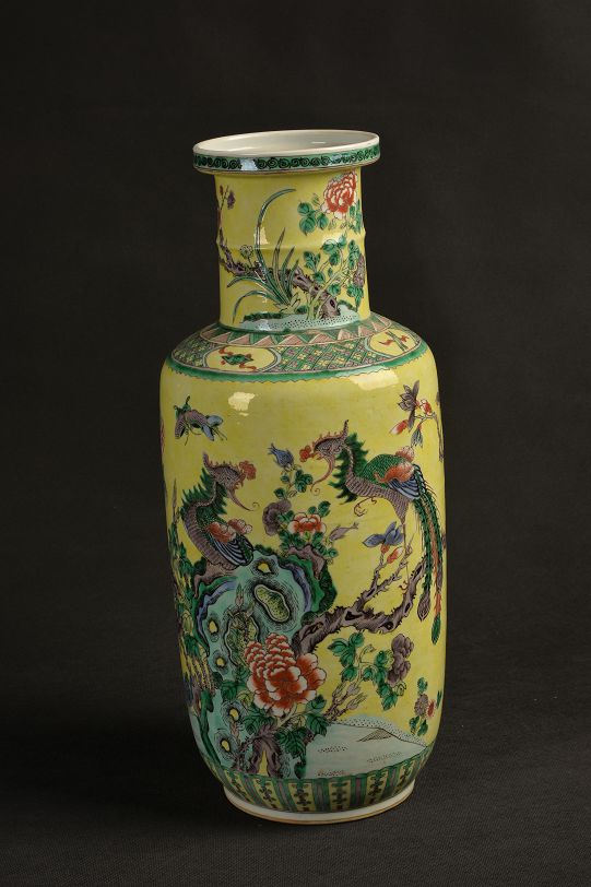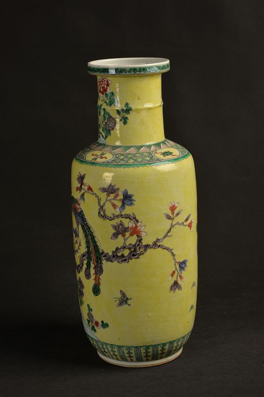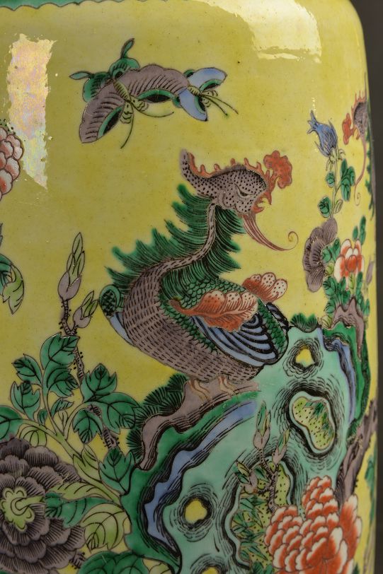 清黄釉粉彩棒槌瓶