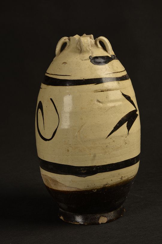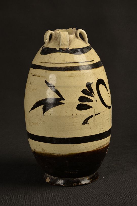 元白釉黑花四系罐