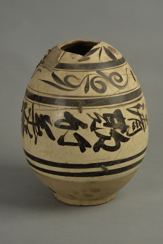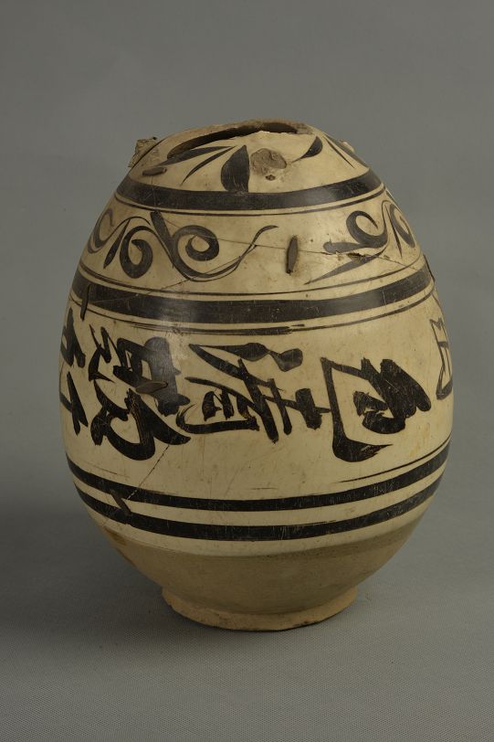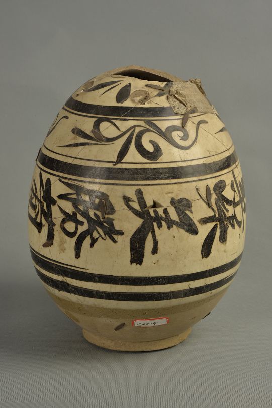 元白釉黑花四系罐