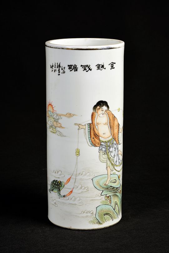 清金钱戏蟾图帽筒