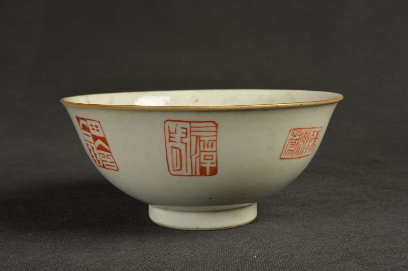 清乾隆白釉西湖十景印文纹碗