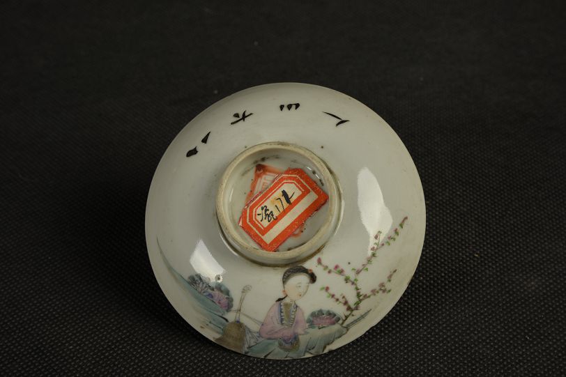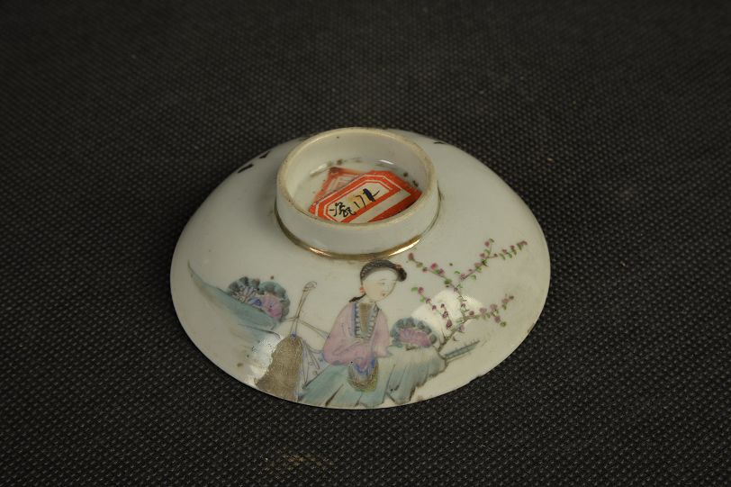 清人物风景图瓷扣碗盖