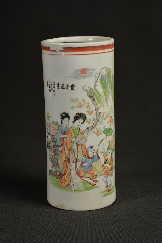 清贵子连生图瓷帽筒